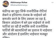 28 अगस्त। संयुक्त किसान मोर्चा ने शनिवार को मुख्यमंत्री खट्टर के विधानसभा क्षेत्र करनाल में प्रदर्शन कर रहे किसानों पर पुलिस की बर्बरता की कड़ी निंदा करते हुए कैमरे पर पुलिस को आदेश देनेवाले एसडीएम आयुश सिंह को तत्काल बर्खास्त करने की मांग की है।
