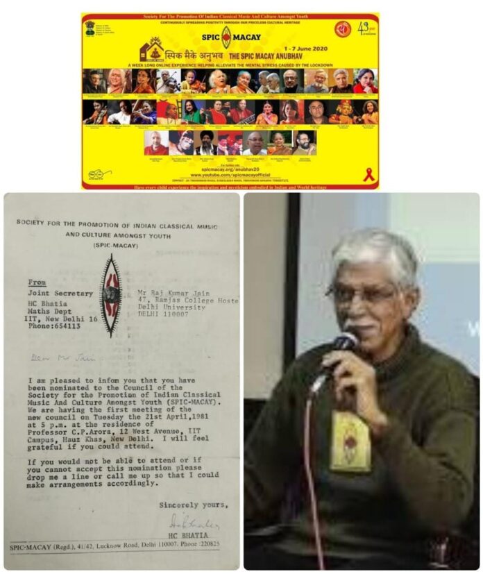 उपरोक्त जो वर्णन मैंने लिखा है, वह कोई किताबी नकल या ज्ञान नहीं, अपने विश्वविद्यालय जीवन में तकरीबन 10 साल मैंने और मेरे एक अन्य साथी पुरुषोत्तम दास जो अभी-अभी इंडियन मिलिट्री इंजीनियरिंग सर्विस से एडिशनल डायरेक्टर जनरल के पद से रिटायर्ड हुए हैं, स्पिक मेंके के वॉलिंटियर के रूप में गुजारे हैं। जब वे दिल्ली कॉलेज ऑफ़ इंजीनियरिंग के छात्र थे तो स्पिक मैके के प्रोग्राम में ही उनसे मुलाकात हुई थी, हिंदुस्तान के प्रसिद्ध शास्त्रीय गायक उस्ताद रशीद ख़ान के गायन का प्रोग्राम उन्होंने अपने कॉलेज में आयोजित किया था, जिसमें श्रोता के रूप में हम पांच लोग वहां मौजूद थे। दिल्ली सहित देश के अन्य भागों में स्पिक मैके द्वारा आयोजित प्रोग्राम में वॉलिंटियर के रूप में हम शिरकत करते थे। साथी पुरुषोत्तम खुद क्योंकि एक बांसुरी वादक भी है, इसलिए प्रोग्राम में मुख्य कलाकार के साथ वे तानपुरा भी बजाते थे। उसी तरह कलाकारों का परिचय लिखने तथा सभा में उद्घोषणा करने का कार्य मैं भी कई बार करता था। स्पिक मैके के वक्त हुई हमारी यह दोस्ती आज भी बरकरार है, उसी तरह अन्य वॉलिंटियरों के भी निजी संबंध हमेशा हमेशा के लिए बन गए होते हैं। हमारे समय में कामायनी, जालान, मुकुलिका बनर्जी, मधुलिका, रुक्मणी शेखर, महेंद्र सिसोदिया, सोमा सुंदरम, मिथिलेश झा ( मोंटू,), सबीना सहगल, मालविका मजूमदार वगैरा की एक टोली एक साथ मिलकर स्पिक मैके के कार्य में जुटी रहती थी। प्रसिद्ध संगीत समीक्षक रविंद्र मिश्रा प्रचार के कार्य में सदैव जुड़े रहते थे।