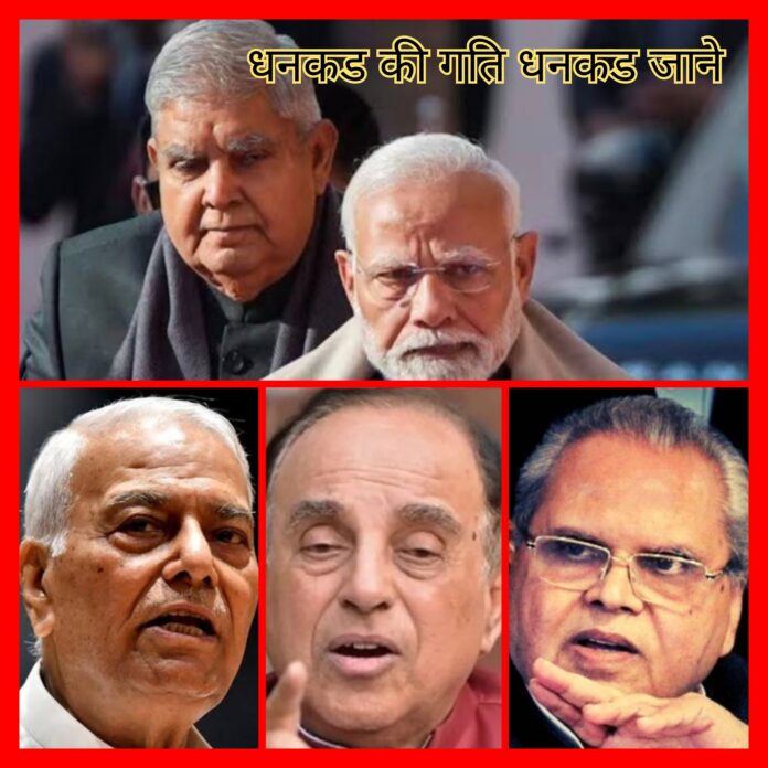 दर असल जो नेता ‘ धनकड गति ‘ को प्राप्त हुए वे मोदी के खिलाफ मुखर होने का दुस्सास कर बैठे. कुछ ने ‘ धनकड गति’ से बचने के लिए या तो मौन साध लिया या फिर चारण -भाट बन गये. रक्षा मंत्री हों या भूतल परिवहन मंत्री सबके सब मौन साधकर बैठे हैं. इस समय सभी मोदी जी की निर्ममता से आतंकित हैं. मोदी पार्टी के भीतर हो या बाहर अपनी मुखालफत बर्दास्त नहीं करते. जो उनके खिलाफ खडा होता है उसे ‘ लोया गति’ या ‘ धनकड गति’ प्रदान कर दी जाती है. ये सिलसिला थमा नहीं है. कल किस नेता को ‘ धनकड ‘ बना दिया जाए, ये कोई नहीं जानता.