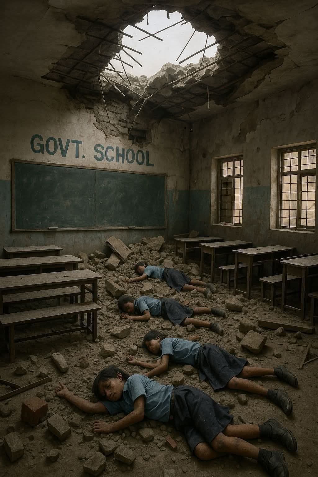 आज भाजपा संघ के आलीशान दफ्तरों को देखें तो लगता है कि हम अमरीका इंग्लैंड जापान जैसी व्यवस्था में हैं और इसी देश में स्कूल की बिल्डिन मुरम्मत न होने से गिर जाती है और 7 बच्चे बेमौत अपनी जिंदगी खो देते हैं। हमें चुल्लू भर पानी में डूब मरना चाहिए। अभी भी समय है देश के आवाम जागें और भ्रष्ट बेईमान धांधली वाली व्यवस्था को बदलें और बेहतर विकल्प देश को दें। मौजूदा सत्ता बिल्कुल नकारी है। इनसे बेहतरी की उम्मीद बेईमानी है। बेमौत और क्रूर व्यवस्था के चलते मारे गए 7 झालावाड़ स्कूल के बच्चों को भारी मन से हम भावभीनी श्रद्धांजलि अर्पित करते है। देश इसका गुनाहगार है!
