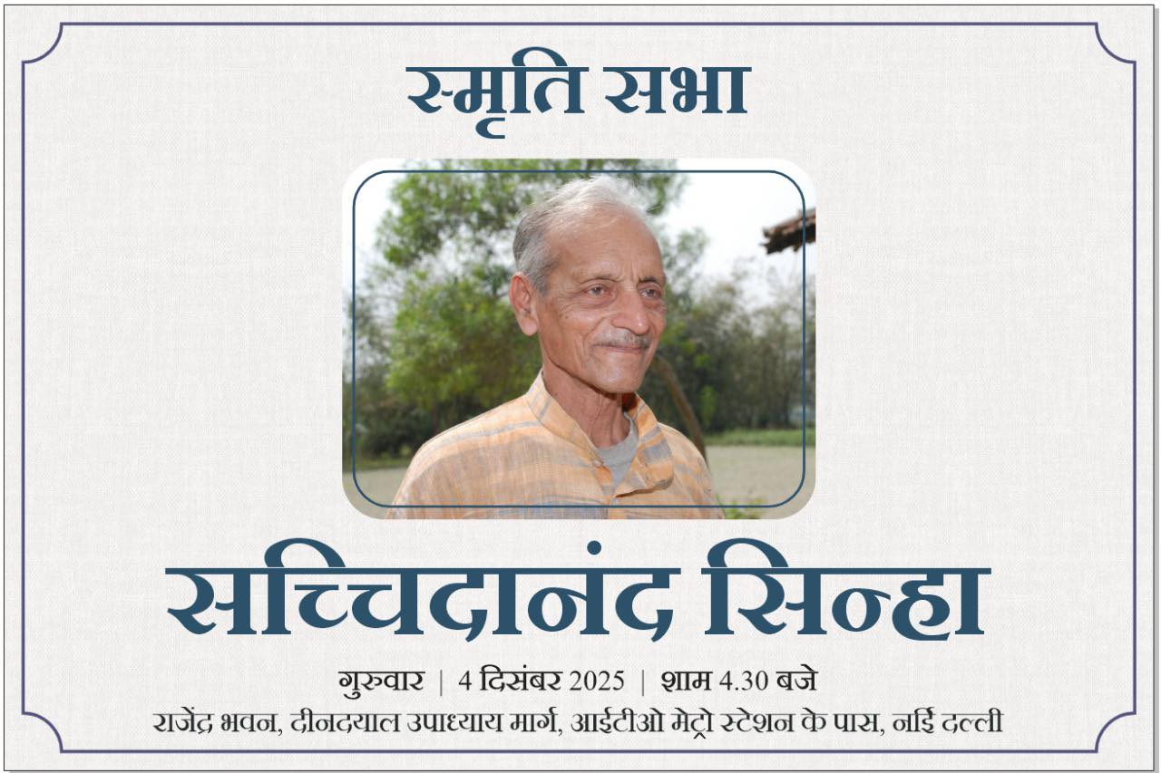 हालांकि उसका अपना कोई घर-परिवार, बीवी-बच्चे तो नहीं थे, परंतु सैकड़ों की तादाद में मुल्क भर के नौजवानों को उसने अपने परिवार का स्थायी मेंबर बना लिया, जो उसके अनुयायी–प्रशंसक कहने में फख्र महसूस करते हैं। उसी सोशलिस्ट विचारक सच्चिदानंद सिन्हा की याद में आज एक यादगार सभा का आयोजन दिल्ली के राजेंद्र भवन में हुआ।